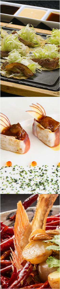 Teppanyaki de pato acompañado de tres deliciosas salsas y ocho crepas.